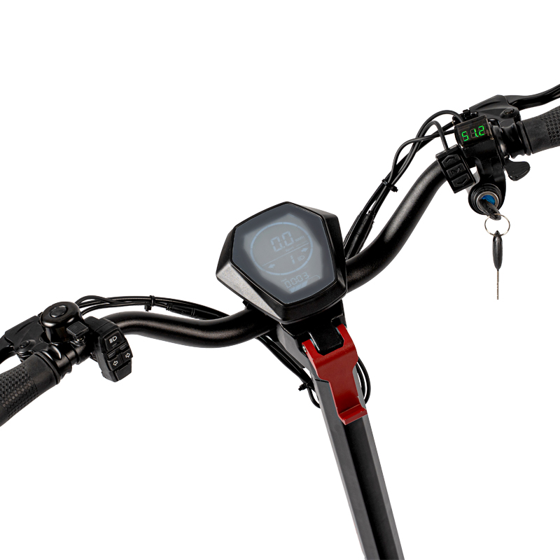Скутерът OKULEY M10 е проектиран в сгъваема форма, която е по-удобна за транспортиране и носене. Системата за сгъване е не само здрава, но и оборудвана с двойни ключалки, за да се гарантира, че скутерът няма да бъде случайно сгънат по време на каране. Това иновативно решение не само осигурява комфорт при ежедневна употреба, но и осигурява безопасност при движение в различни зони.